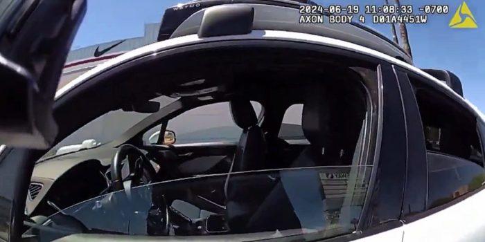 On June 19, camera footage reveals a police officer pulling over a driverless Waymo car in Phoenix.